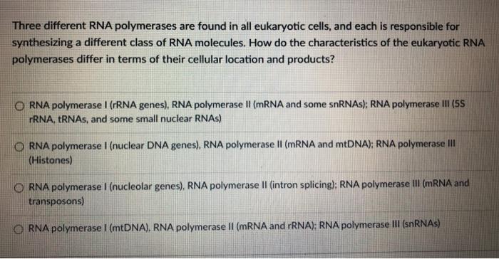 Solved Three Different Rna Polymerases Are Found In All Chegg Com