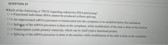 Which of the Following Statements About Eukaryotic Rna Is True